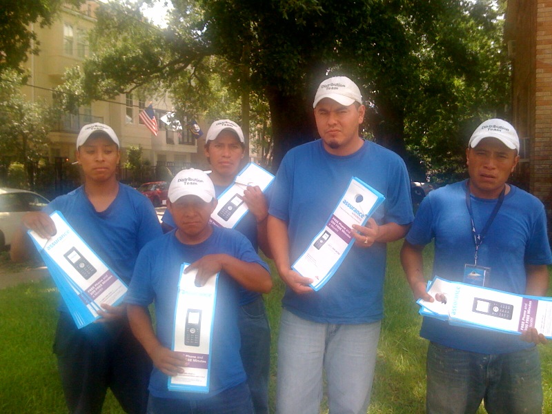 Distribución de volantes de compañía télefonica.